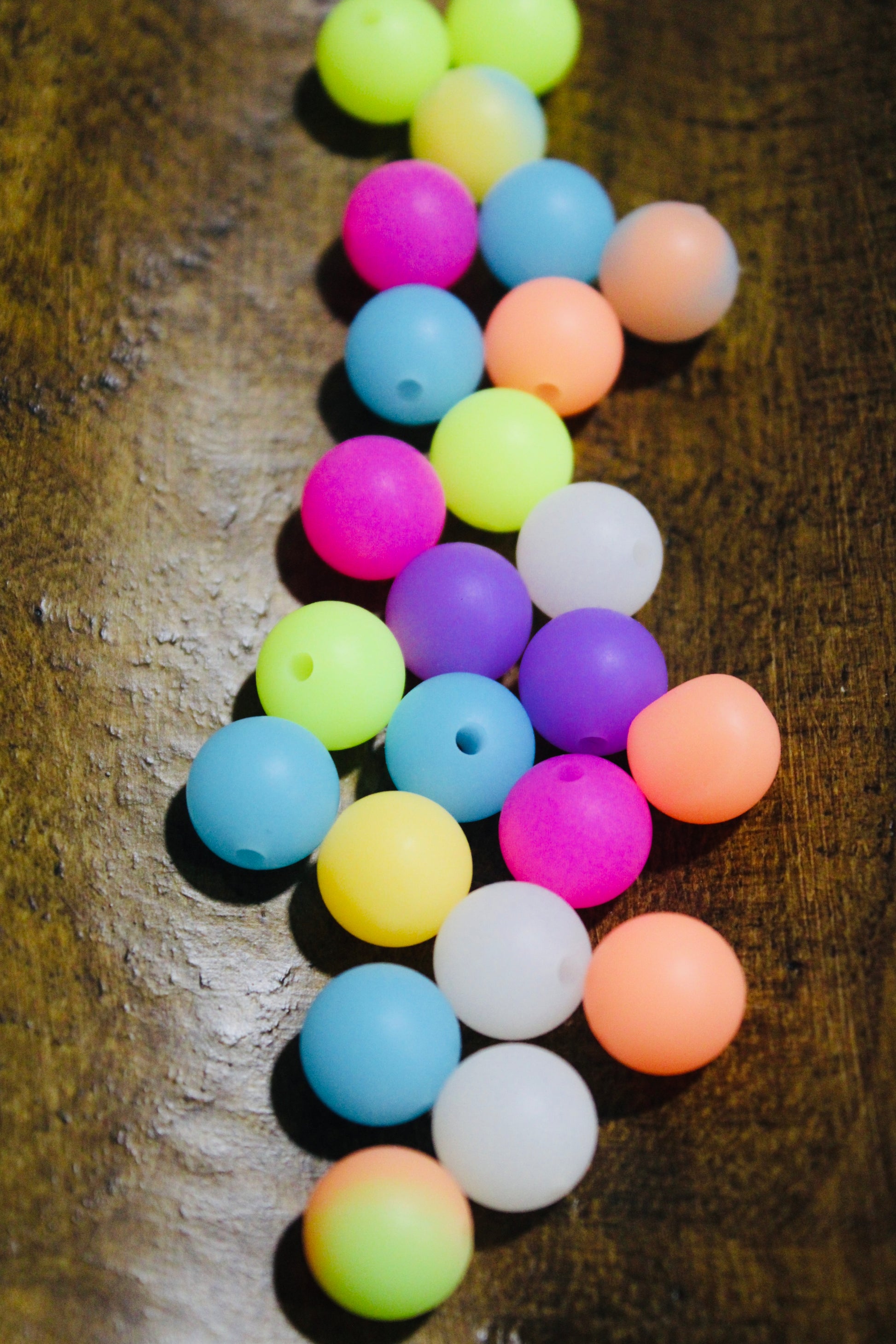 This Twenty Count Bead Bag includes 12mm round silicone beads with a glow in the dark feature. Perfect for crafting and beading, these colorful beads add a unique touch and light up in the dark. Get creative and make your designs stand out with this versatile bead bag.