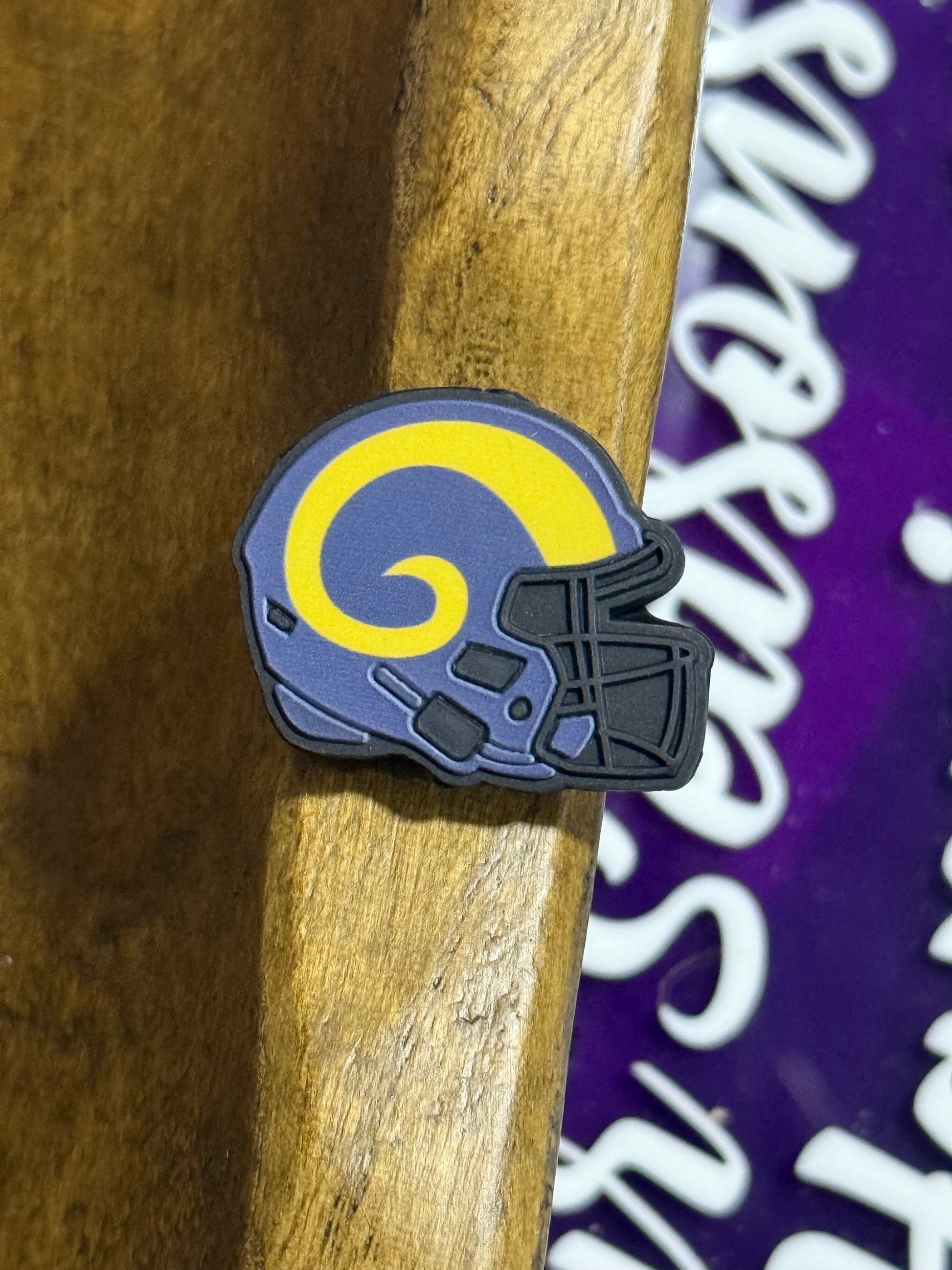 Enhance your football-themed crafts with our Football Helmet Silicone Focal Bead. Made of durable silicone, this focal bead is sure to add a unique touch to your creations. Use it to create eye-catching jewelry or as a decorative embellishment. Get yours today!
